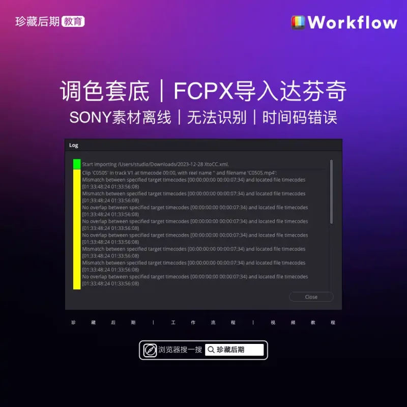 解决Final Cut Pro工程中剪辑时间线导入DaVinci中,SONY摄像机拍摄视频原始素材无法导入、离线、报错等问题。