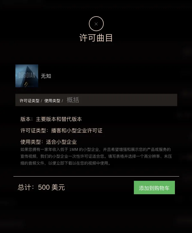 2、试听或搜索需要授权的曲目,然后将曲目添加到🛒购物车之中