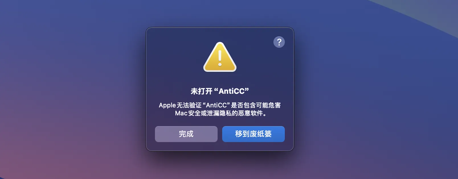 新版 macOS 15 以上系统中苹果更新了“安装验证策略”,只要安装 Apple Store 以外的软件,都会提醒应用无法安全打开(下图所示)。