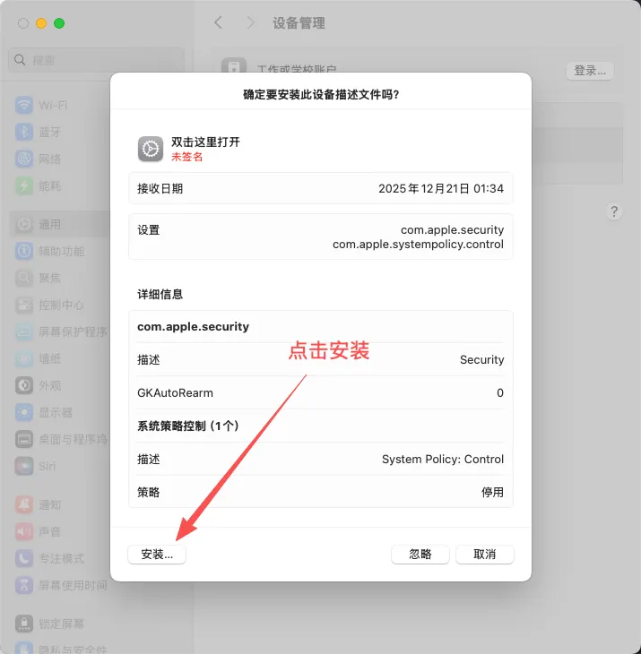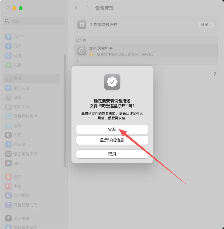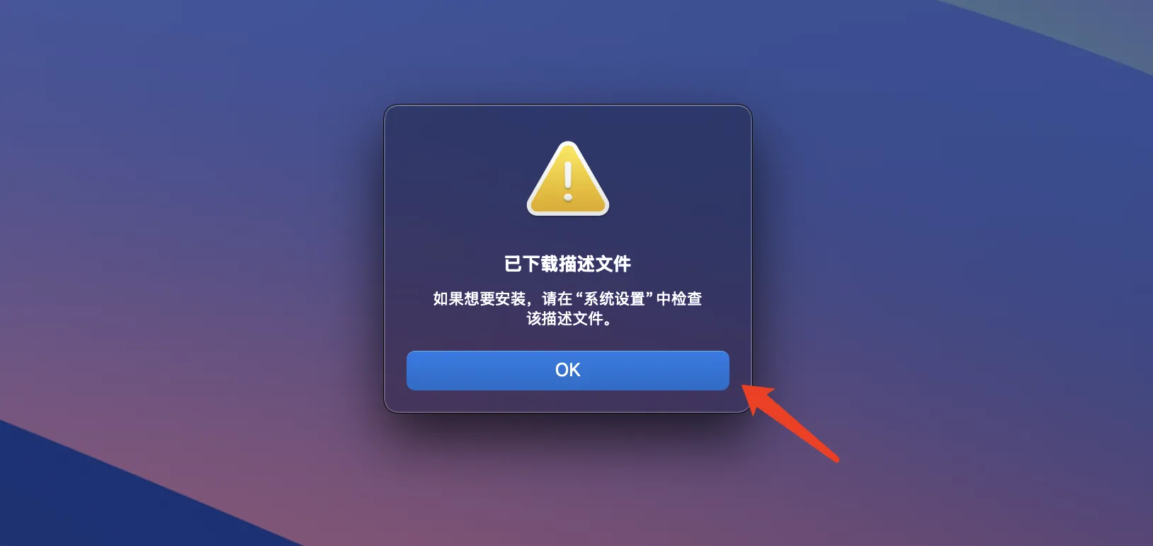 2、下载完或打开描述文件出现这个弹窗点 OK 按钮