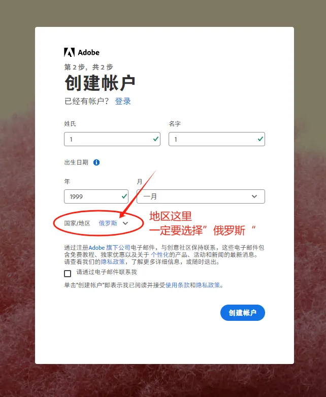 (这里一定要用自己的邮箱(qq/163/谷歌邮箱都可以)注册一个新的账号,注册的时候“地区”一定要选择“俄罗斯”,看下面的图片!!!