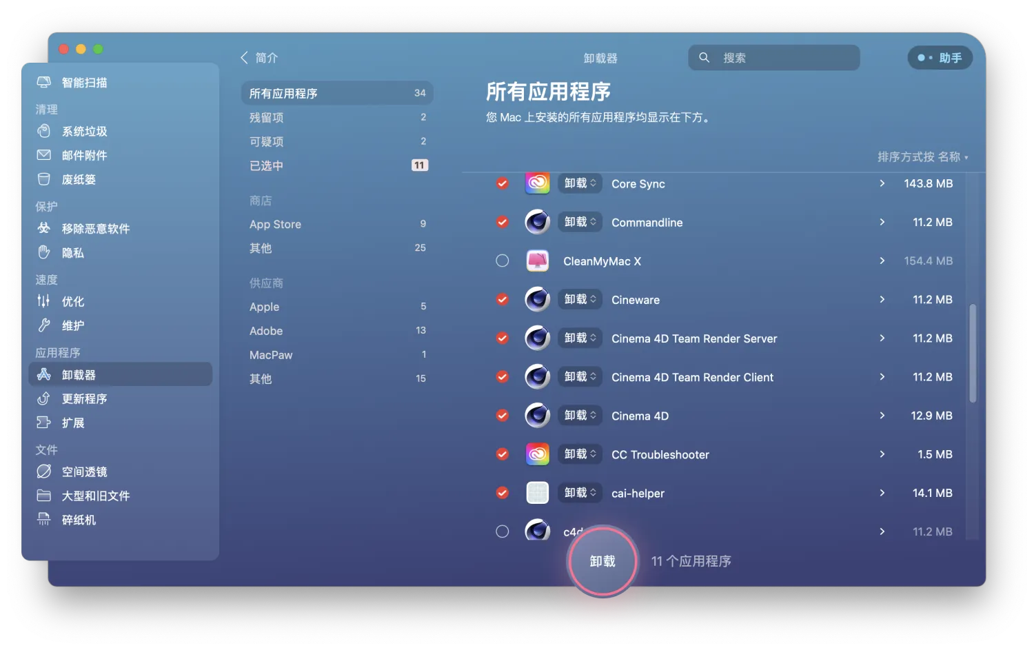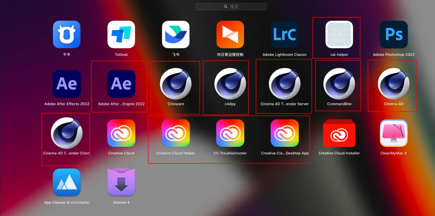 2.启动台找到CleanMyMacX_mac并打开【注意红色框起来的那些图标可以用卸载工具卸载,其他的不能乱卸载】